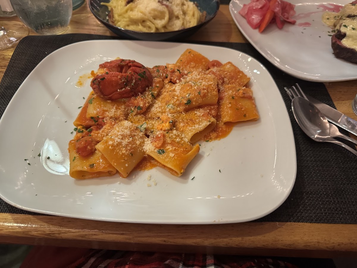 For seafood lovers, the Soute' di Vongole ($22) is an absolute must-try—clams gently sautéed in a delicate white wine sauce that envelops your senses. Don’t overlook the Insalata Tricolore ($18), with its vibrant layers of arugula, tomatoes, and sautéed mushrooms, a refreshing prelude to the main course.