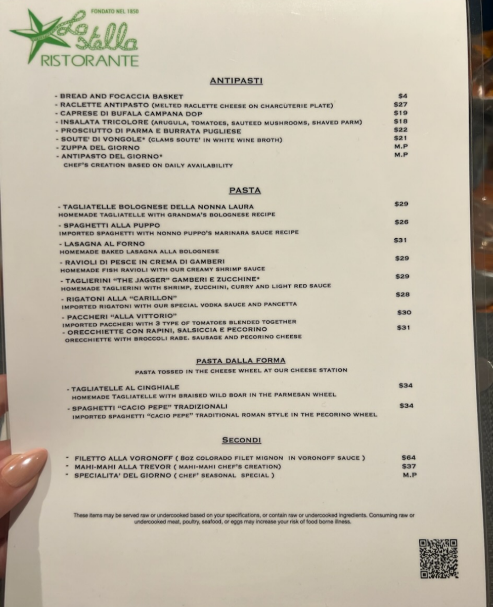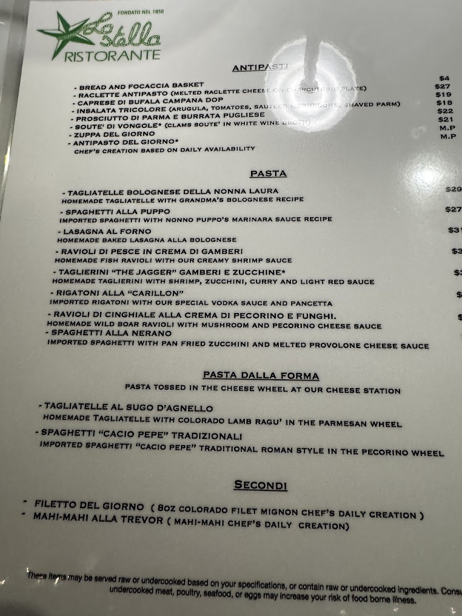 Welcome to Lo Stella Ristorante, your new favorite Italian eatery nestled in the heart of Denver. Here, the menu is a celebration of traditional Italian flavors, featuring homemade pastas that embody the essence of family recipes passed down through generations. Indulge in the delightful Tagliatelle Bolognese della Nonna Laura, a tribute to grandmothers everywhere, for just $29.00. For a taste of coastal inspiration, try the Taglierini con Gamberi, Zucchini e Zafferano, a Mick Jagger-approved dish bursting with flavor for $32.00.